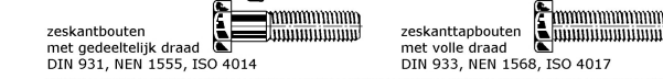 B212045- Roestvrijstaal (kwaliteit AZ of A4:RVS-316)(Maat:M 6x 16mm)(type:vool)(DIN norm:933mm)(sleutelwijdte mm:10mm)(verpakt per:200)