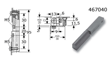 kunststof paumelles, zwart polyamide (PA) hoogte 95mm, met roestvrijstalen pen ø6mm voor minimum 20mm voorliggende deur