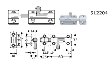 uitslag 17mm naar 2 kanten, onder schoot h=9,5mm grondplaat hoogte 5mm, totale hoogte 20mm met 4 verzonken schroefgaten (4mm/M4) met roestvrijstalen sluitplaat & sluitbeugel verpakt per 20 stuks met RVS schroeven